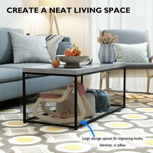 Shop Gymax Metal Frame Cocktail Coffee Table Cement Color